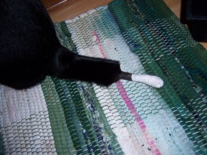 It was certainly a day. I tell you guys, I’m exhausted. I feel like I got MY tail amputated…worn out. I picked him up, and $110 later, with meds and instructions for follow up visits and stitches removal and don’t let him eat a lot, don’t let him outside, don’t let him chew on his tail (are they KIDDING ME??) we’re home for the evening. The vet had no idea as to what it was that took the tail. I looked all around for the bits should they be lying about, but nada. Nothing. Zilch.