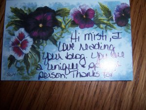 Got home today to find a delivery from my George. Beautiful flowers with beautiful words of love written to me on the card. The weekend could not have ended on a higher note. I think that his home office is in Ft.Worth and that my thanks should be forwarded to his people down there. Many many thanks. Sigh.