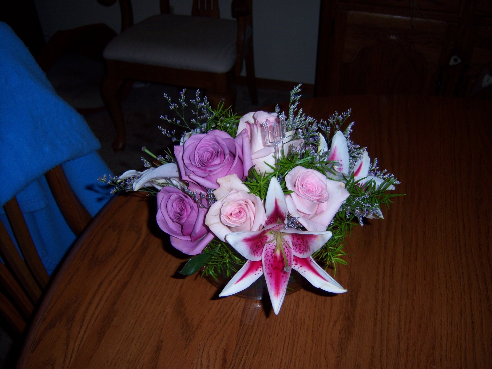 Got home today to find a delivery from my George. Beautiful flowers with beautiful words of love written to me on the card. The weekend could not have ended on a higher note. I think that his home office is in Ft.Worth and that my thanks should be forwarded to his people down there. Many many thanks. Sigh.